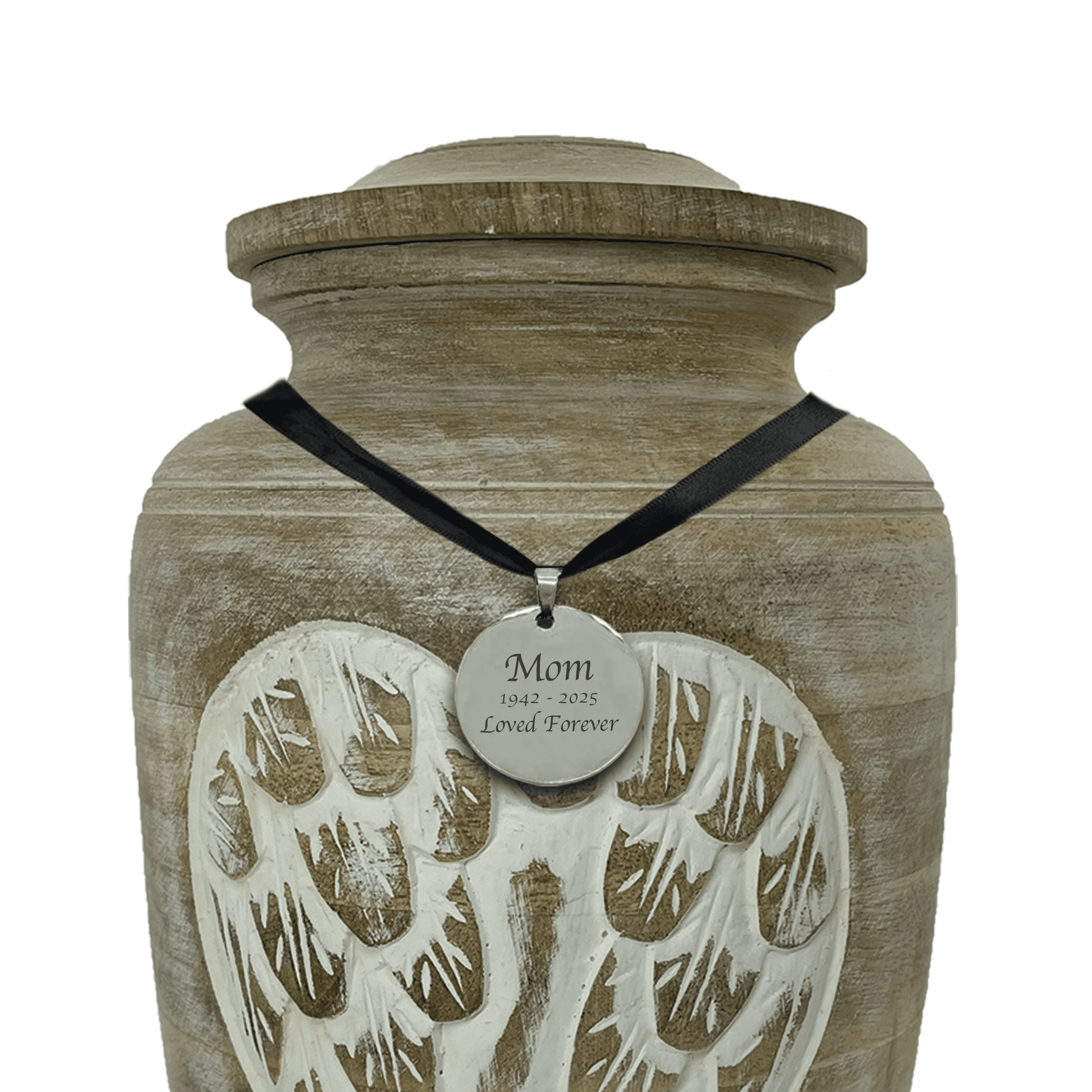 Add a Charm to any non-engravable urn. Charm options include a circle, oval, heart or tag style.