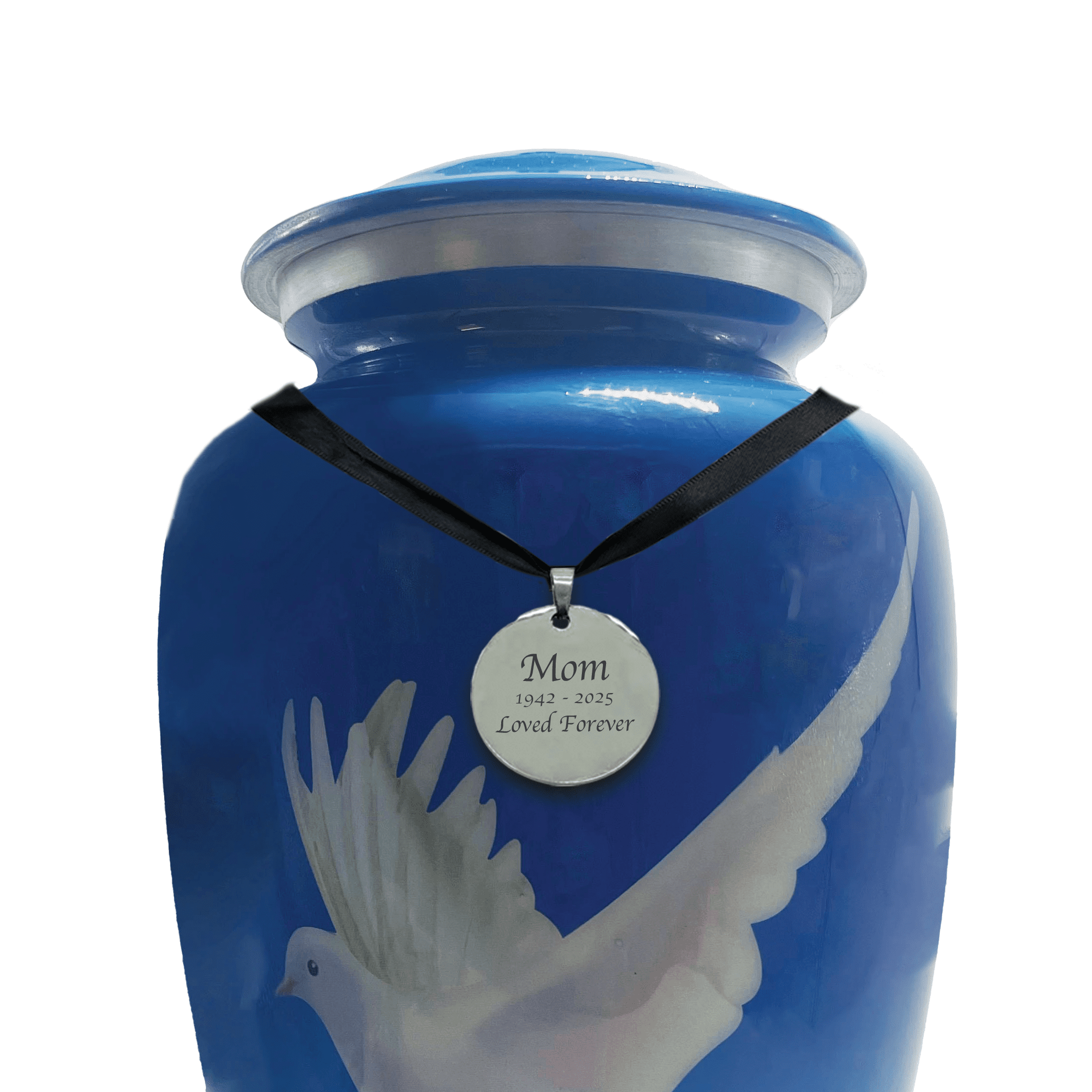 Graceful and uplifting, this aluminum cremation urn features a pure white dove in flight against a vibrant blue sky—symbolizing peace and freedom. Crafted from durable, lightweight aluminum with a smooth, glossy finish, the urn is designed for both beauty and longevity.